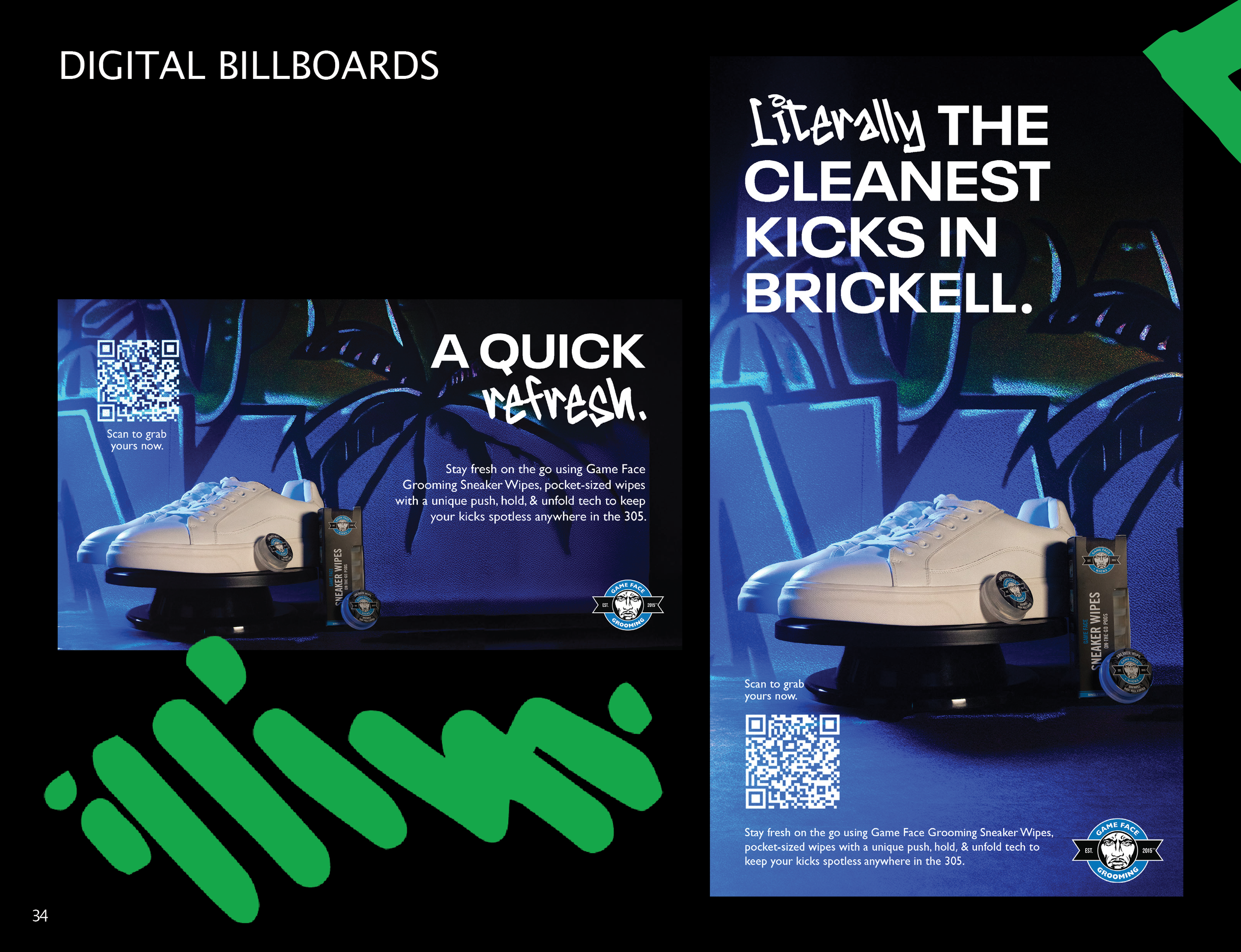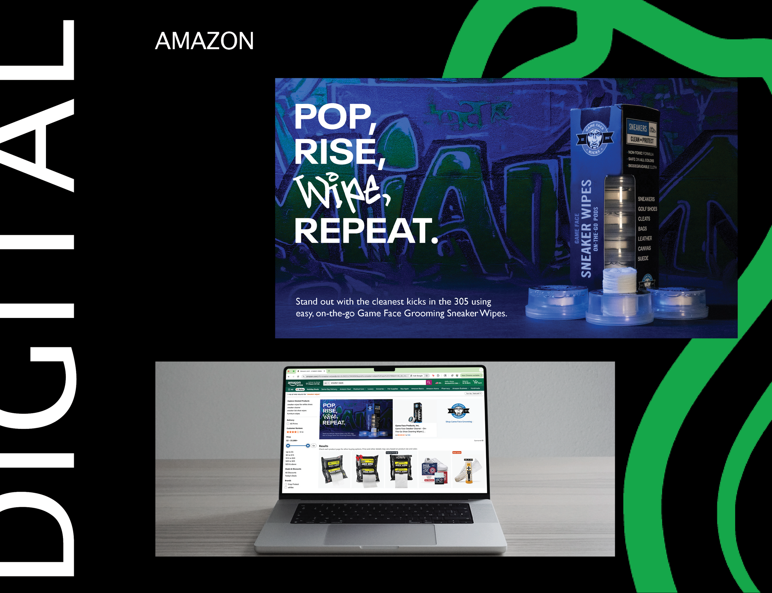 We reframed clean sneakers as symbols of confidence. The wipe pod became part of a daily routine, not a utility. Fresh sneakers signal that you are put together. By leaning into portability and cultural relevance, we elevated Game Face Grooming into a lifestyle brand.